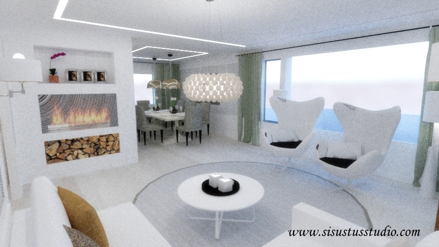 Olohuone ja ruokailutila, sisustussuunnittelu Tampere 120m2 perinteinen kerrostalo-osake muutetaan LUXUS asunnoksi Tampereella. Sisustussuunnittelija Marika Piekkala