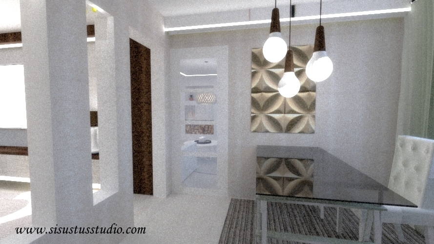 Eteisestä haluttiin tehdä jo kutsuva ja arvokas. Sehän on ensimmäinen yleiskuva ja käyntikortti. Eteisestä purettiin myös vaatehuone ja saatiin uutta tilaa vaatekaapilla.Makuuhuoneen taakse tehtiin myös iso vaatehuone ja pukeutumistila, josta pääsee myös tilanjako-ovien kautta kulkemaan, sekä makuuhuoneesta että eteisen käytävältä. Olohuoneesta tuli avara ja tilaan integroitiin myös biotakka. Valaisimiset tuo tilaan arvokkuutta. Avokeittiöstä on helppo seurustella nyt vieraiden kanssa, jotka istuvat ruokailutilassa.