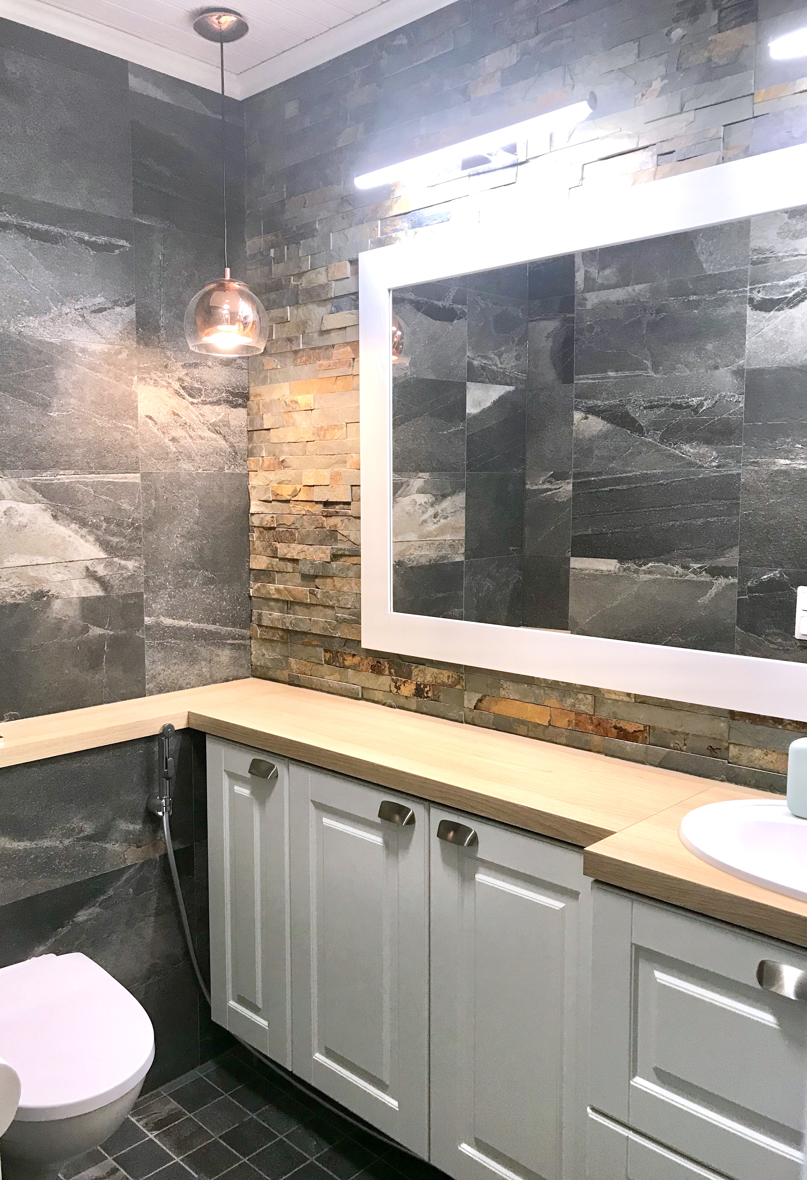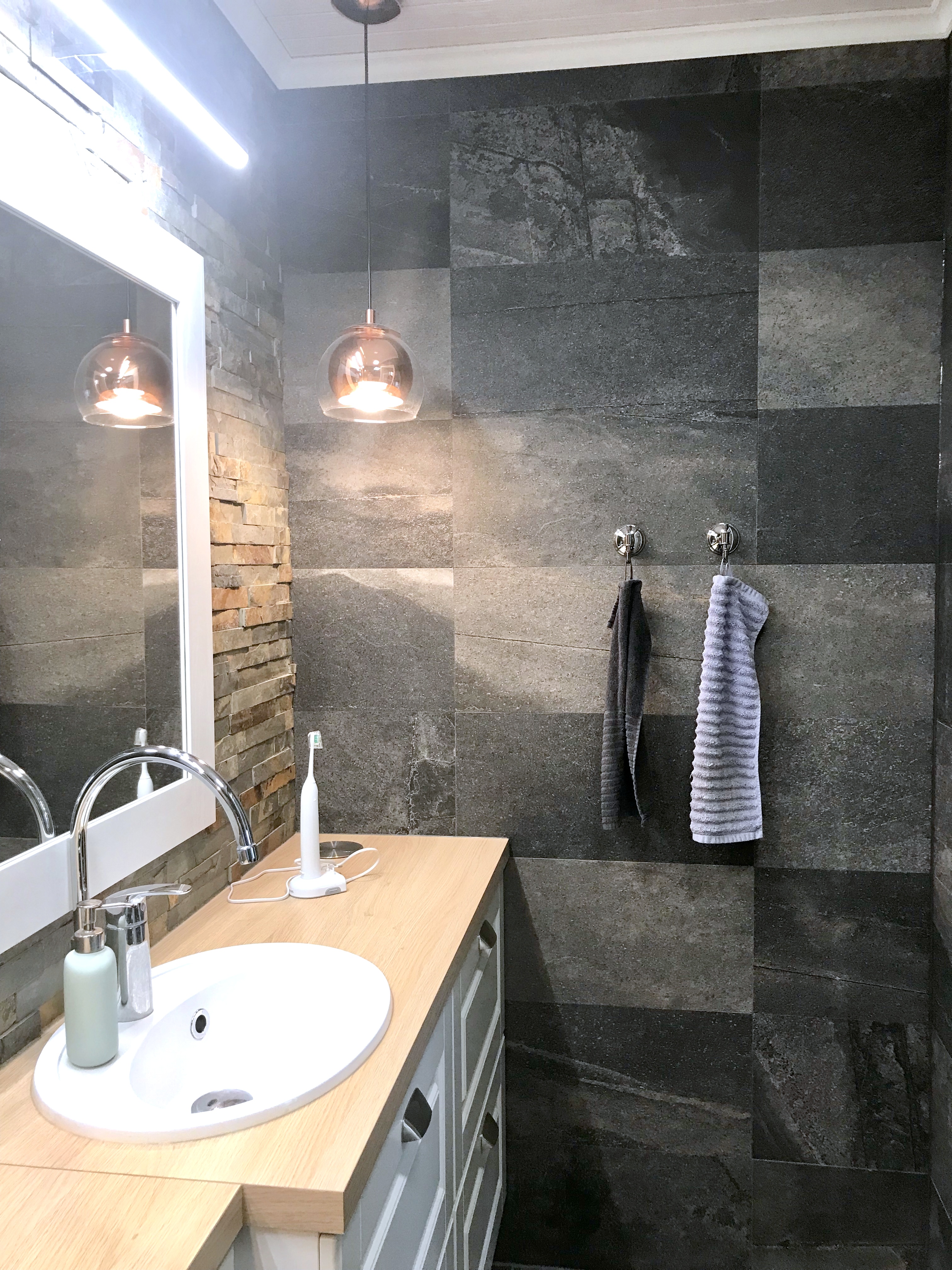 Mielestäni tämän paritalon wc on tämän asunnon kruunu, ja turkoosit sävyt pehmentää tätä upeaa asuntoa. Asiakas oli erittäin onnellinen uudesta kodistaan, joka on rakennettu 50-luvulla.