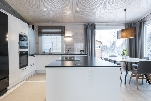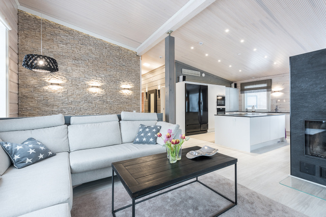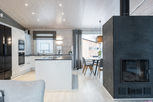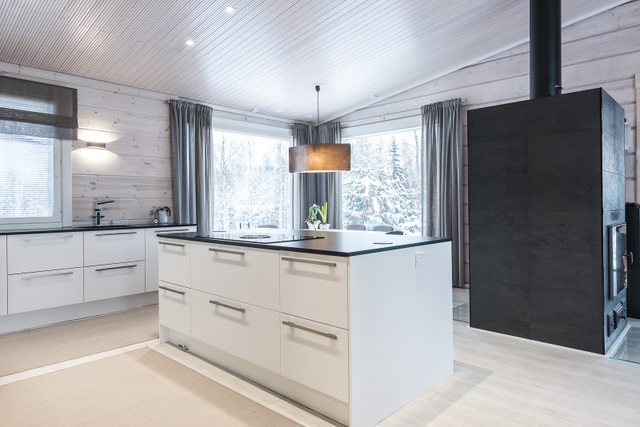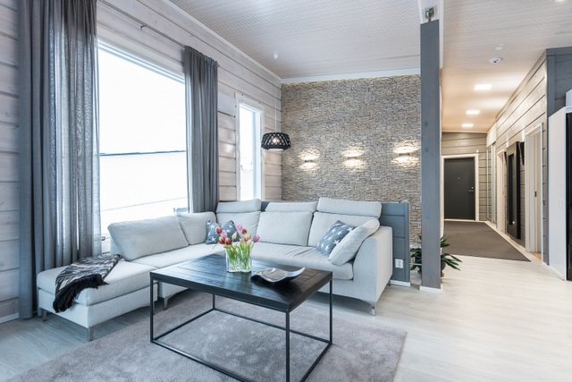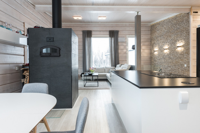 Olohuone, keittiö, sisustussuunnittelija Tampere, hirsitalo, kivitalo, kokonaisvaltainen sisustussuunnittelu, Marikan SIsustusStudio, kuvat Vesa Kivimäki