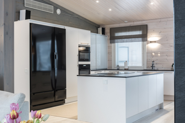 Kodinkoneet tulivat Veikon Koneesta, Somerolta.Tein kohteeseen pintasuunnittelut ja huonekalusuunnittelut, sekä lopuksi