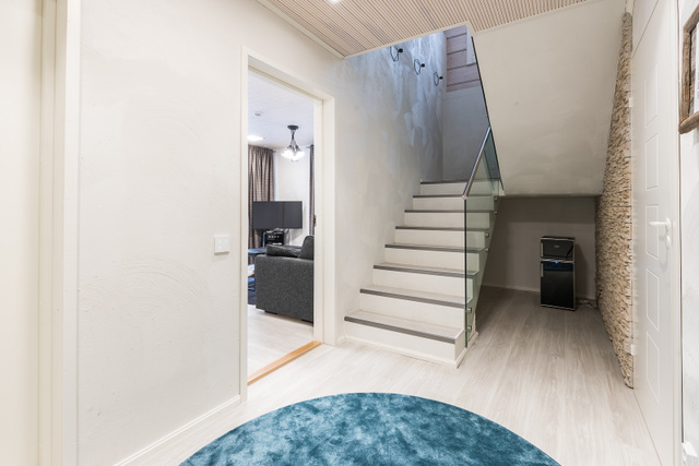 Tässä kodissa isoin haaste oli se, että talot tulivat kahdesta eri talotehtaasta. Kivitalo alakerrassa ja