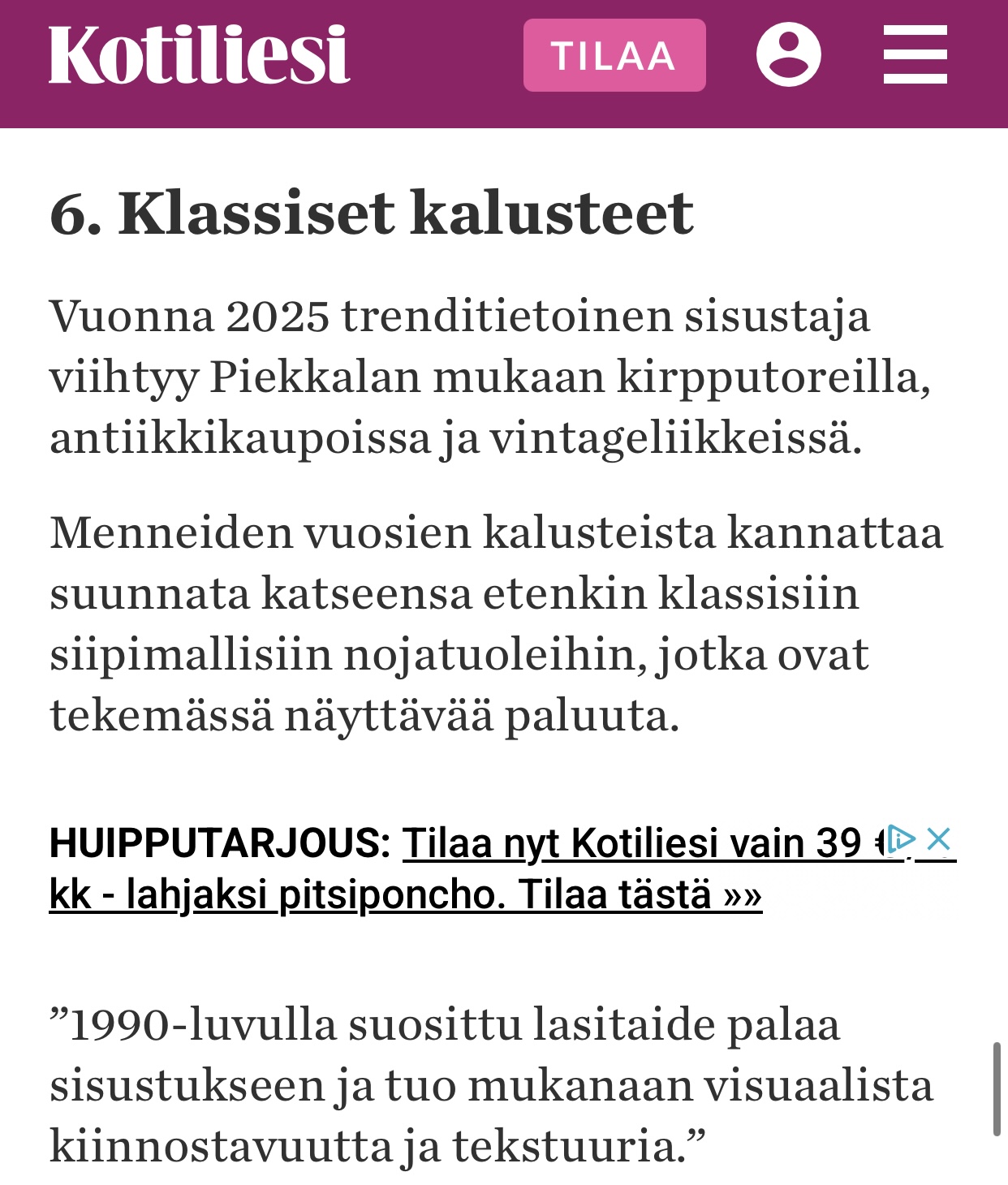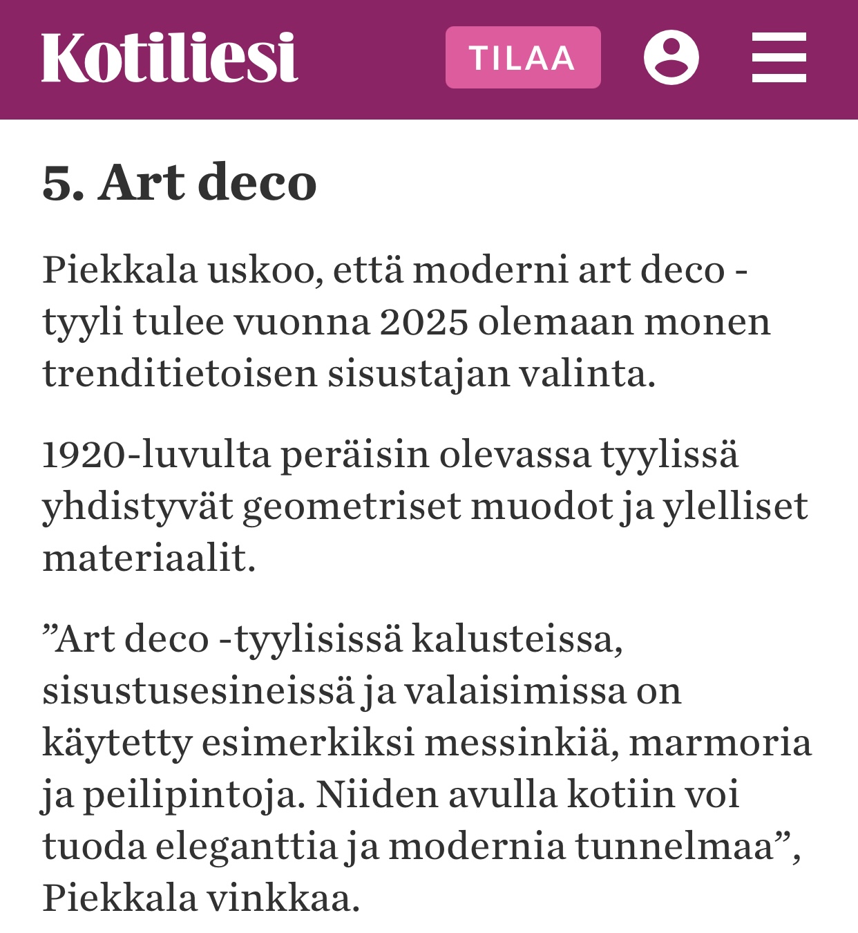 Kotiliesi lehden haastattelu, Iida Tani, Sisustustrendit 2025