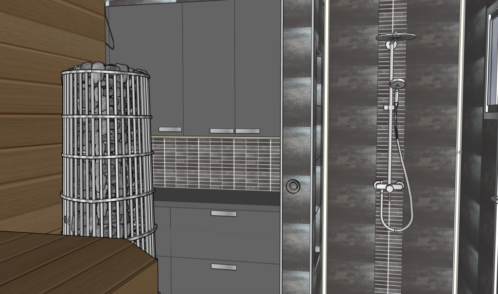 Minä tein tilasuunnittelun, pintasuunnittelun, valaistuksen ja kiintokalustesuunnittelun.